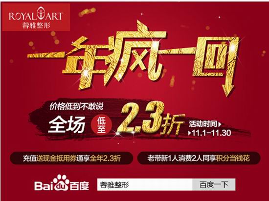 “双11”整形成新宠 蓉雅整形全场2.3折起 疯抢程度堪比电商