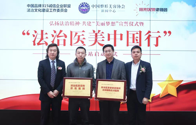2018年3月12日,由中国品牌315诚信企业联盟法治文化建设工作委员会、中国整形美容协会新闻中心和阳光伙伴律师团发起的“弘扬法治精神·共建“美丽梦想”向宪法宣誓暨“法治医美中国行”山东站启动仪式隆重举行。会上潍坊医学院整形外科医院被授予“法治医美宣传示范医院”、“非法医美受害者维权法律援助定点医院”荣誉称号。