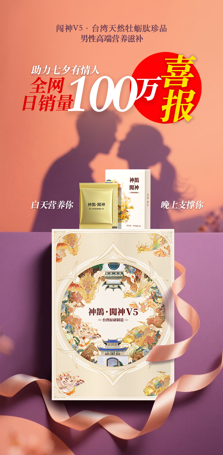 8月29日七夕情人节,小编突然收到线报——男性高端滋补品牌“神鹊闯神V5”突然放大招!推出七夕限定狂补计划:买一件直接送两件,一口气省下1980元!