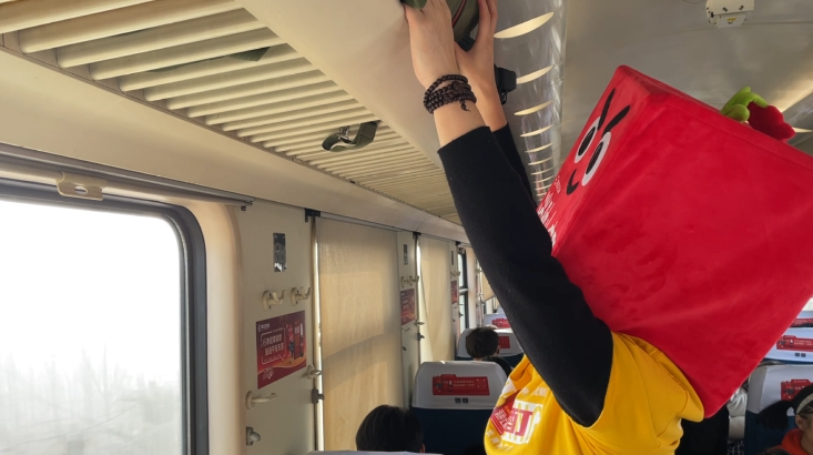 列车驶离站台,“移动健康驿站”也随之启动。工作人员与“壮酊”组成出行守护小分队,为旅客送上年味十足的“新春健康福袋”,福袋内不仅装有传统年货,更搭配了壮酊周边好礼,守护平安归乡旅程。与此同时,“壮酊”邀请旅客一起说出对家人与未来的美好期盼,将品牌的健康守护理念融入新春的祝福语境之中,实现与旅客的情感同频。